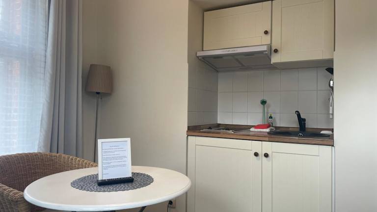 Die Unterkunft verfügt über eine voll ausgestattete Küchenzeile, die mit einem Kühlschrank, einer Kaffeemaschine, einer Herdplatte, einem Toaster und einem Wasserkocher ausgestattet ist. Dies ermöglicht den Gästen, ihre Mahlzeiten selbst zuzubereiten.