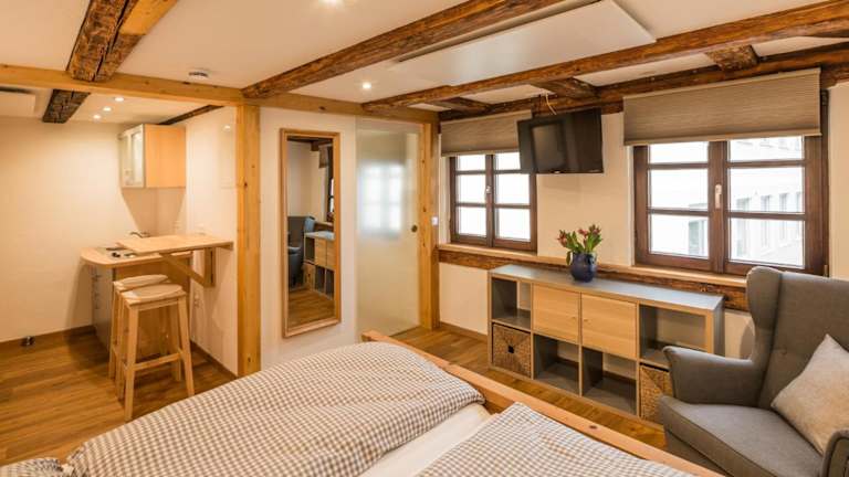 Die Zimmer der alten Ritterstube sind mit einem Schreibtisch, einem Flachbild-TV und einem eigenen Badezimmer ausgestattet. Zu den weiteren Annehmlichkeiten zählen Bettwäsche, Handtücher und ein Kleiderschrank, der in allen Wohneinheiten vorhanden ist.