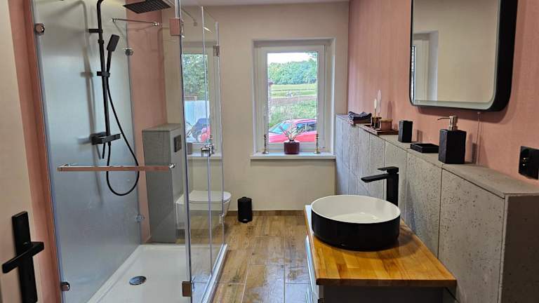 Die Ferienwohnung umfasst ein Schlafzimmer, ein Wohnzimmer und eine voll ausgestattete Küche mit Kühlschrank und Kaffeemaschine. Das Badezimmer ist mit einer Badewanne oder Dusche und einem Haartrockner ausgestattet. Handtücher und Bettwäsche werden bereitgestellt.
