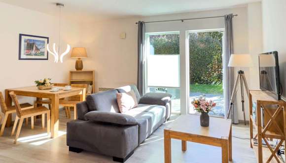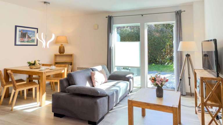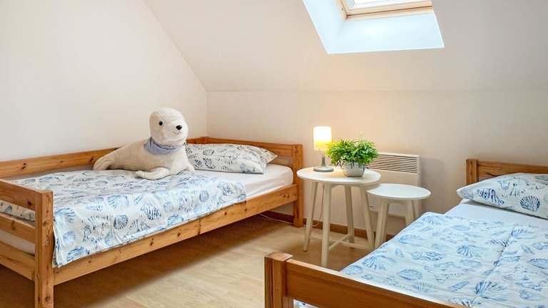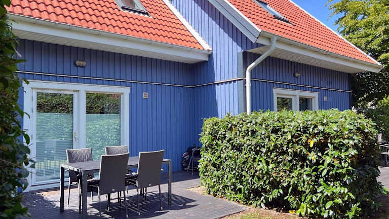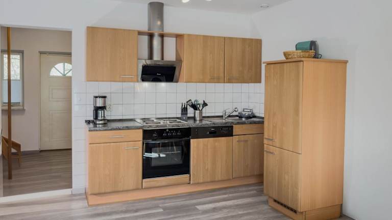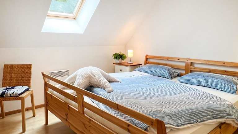 Das Ferienhaus verfügt über zwei Schlafzimmer, eine Küchenzeile mit Kühlschrank und Geschirrspüler sowie zwei Badezimmer mit Dusche.
