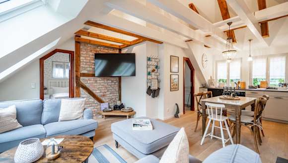 Pudagla, 18 km von Baltic Park Molo Aquapark, 19 km von Zdrojowy-Park und 22 km von Bahnhof Swinemünde. In der Nähe befindet sich der Naturpark Insel Usedom (1,7 km) und die Seebrücke Ahlbeck (11 km). Der nächstgelegene Flughafen ist der Flughafen Heringsdorf, 17 km entfernt.