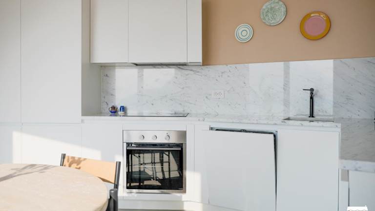 Die Ferienwohnung verfügt über 2 separate Schlafzimmer, eine voll ausgestattete Küche mit Kühlschrank und Geschirrspüler sowie 1 Badezimmer. Handtücher und Bettwäsche werden bereitgestellt.