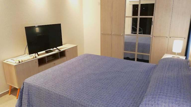 Das Apartment verfügt über ein Schlafzimmer, ein Wohnzimmer, eine voll ausgestattete Küche mit Kühlschrank und Kaffeemaschine sowie ein Bad mit Bidet und Dusche. Zur Ausstattung gehören Klimaanlage, schallisolierte Zimmer, Handtücher und Bettwäsche, die gemäß örtlichen Vorschriften gewaschen werden.