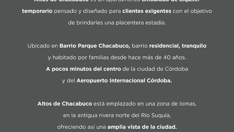 Altos de Chacabuco Planta Alta ist eine premium, voll ausgestattete Ferienwohnung mit Balkon, Garten und Terrasse. Sie bietet ein modernes Ambiente und eine Vielzahl an Annehmlichkeiten wie kostenloses WLAN und Privatparkplatz.