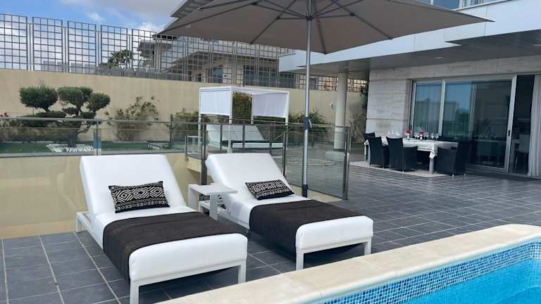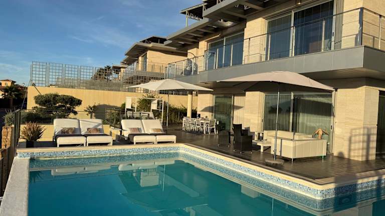 Die Villa umfasst 3 Schlafzimmer und bietet eine voll ausgestattete Küche mit Kühlschrank, einen Sitzbereich und eine Waschmaschine. Es sind 3 Badezimmer vorhanden, ausgestattet mit Bidet, Dusche und Whirlpool.