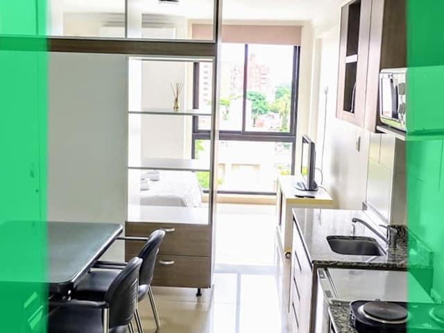 Die Ferienwohnung bietet ein Schlafzimmer, ein Wohnzimmer sowie eine voll ausgestattete Küchenzeile mit Kühlschrank. Zur Ausstattung gehört ein Badezimmer mit Bidet und kostenlosen Pflegeprodukten. Handtücher und Bettwäsche werden bereitgestellt. Die gesamte Unterkunft ist klimatisiert und bietet Heizungsoptionen.