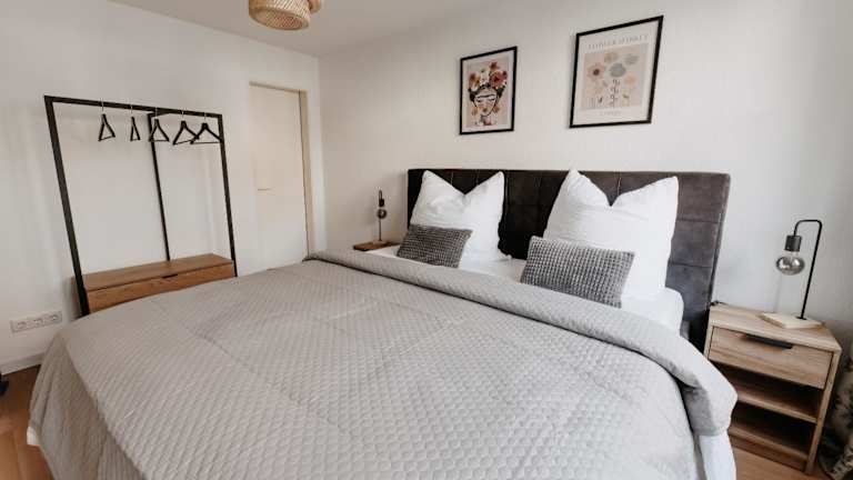 Die Ferienwohnung umfasst zwei Schlafzimmer, ein Wohnzimmer und eine voll ausgestattete Küche, die mit einem Kühlschrank und einer Kaffeemaschine ausgestattet ist. Ein Badezimmer mit Dusche und Haartrockner ist ebenfalls vorhanden. Handtücher und Bettwäsche werden bereitgestellt.