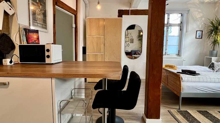 Die Unterkunft Geräumiges Studio in der Altstadt mit Küche & Kingsize Bett Come In bietet ein geräumiges Studio, ausgestattet mit einer voll ausgestatteten Küche und einem Kingsize Bett. Die Gäste haben Zugang zu einer Terrasse und optionalen Fahrradverleih.