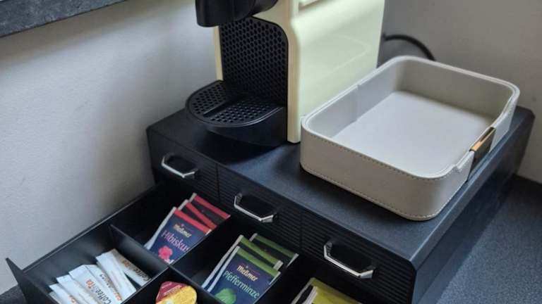 Es gibt eine voll ausgestattete Küche in jeder Wohneinheit, die mit einem Esstisch, einem Kühlschrank, einer Mikrowelle, einer Herdplatte, einer Kaffeemaschine und einem Wasserkocher ausgestattet ist. Eine Snackbar ist ebenfalls vorhanden.