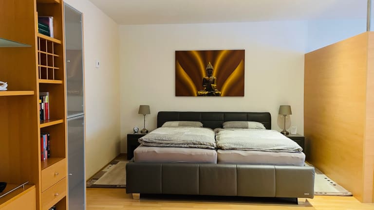 Herzlich willkommen. Welcome. Bienvenue. Willkommen im Altstadthaus „Buddha“ im Herzen von Erfurt. In einem Dreiseitenhof bieten wir Ihnen zwei Ferienhäuser am Flusslauf der Schmalen Gera in der Erfurter Altstadt. Von Ihrem Ferienhaus aus hören Sie die Kirchenglocken des nahe gelegenen Augustinerklosters, der Wohn- und Wirkungsstätte von Martin Luther. Unsere Ferienwohnungen befinden sich in einer zentralen und dennoch ruhigen Lage. Die Ausstattung ist hochwertig und geschmackvoll. Über den Park „Venedig“ kehren Sie direkt in das historische Zentrum der Landeshauptstadt mit seinen altertümlichen Bauanlagen rund um den Mariendom, Museen, Restaurants, Shoppingmeilen und Parks ein. Zu Einkaufsmöglichkeiten und Straßenbahnen sind es nur wenige Minuten Fußweg. ICE-Bahnhof und Flughafen sind mit der Straßenbahn in Kürze zu erreichen. Zur Klassikerstadt Weimar, zur Residenzstadt Gotha, zur Universitätsstadt Jena oder zur Wartburgstadt Eisenach gelangen Sie jeweils in weniger als 45 Minuten. Erholung finden Sie im Thüringer Wald oder im Naturpark Hainich.