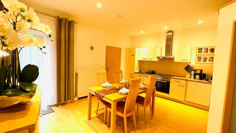 Ferienhaus I Unser Ferienhaus ist ein, zur Parterre gelegenes, abgeschlossenes Steinhaus mit eigenem Zugang über den Hof. Es ist mit seinen circa 85 qm groß genug für bis zu vier Personen. Wohn-/Schlafzimmer, ca. 41 qm: Mit gemütlicher Sitzgruppe mit ausklappbarem Sofa (1,40 m breit), einem Doppelbett (180 x 200 cm), Sesseln, Tisch, Anbauwand und Schreibtisch. DVD-Player , CD-Player, Satelliten-TV, Stereoanlage, diverse Spiele, Bücher, CDs und DVDs Küche ca. 16 qm: Mit großzügigem Essplatz für bis zu 6 Personen, Einbauküche mit Kühlschrank, Herd mit 4-Platten Cerankochfeld, Backofen. Microwelle, Kaffeemaschine, Toaster, Wasserkocher, komplette Küchenausstattung und Geschirrspülmaschine. Austritt zur Terrasse. Schlafzimmer ca. 12 qm: Ausgestattet mit einem Boxspringbett (180x200 cm), einem Schrank und einem Bücherregal. Begehbarer Kleiderschrank ca. 5 qm: Mit genügend Fächern, Hängefläche mit Bügeln, Bügelbrett und Bügeleisen. Sitzbank Bad ca. 11 qm: mit Fenster, Dusche, Waschplatz sowie abgetrenntem WC, Waschmaschine Außenbereich ca.45qm: großeTerrasse, überdachter Grillplatz, Gartenstühle, Gartentisch, Sonnenschirm Elektro- oder Holzkohlegrill. Stellplatz für PKW Preise pro Nacht für zwei Personen : ab 95 Euro Zusatzperson : 15 Euro Parkplatz auf dem Grundstück pro Nacht: 5 Euro Bei allen privaten Reisen erhebt die Stadt Erfurt eine 5%ige Kulturförderabgabe, welche auf den Bruttopreis aufgeschlagen wird. Buchbar ab zwei Nächten Partys/Veranstaltungen sind nicht erlaubt. Beinhaltet in diesen Preisen sind die Endreinigung und die Bereitstellung von Handtüchern und Bettwäsche. Weitere Ausstattung: Fön, Toilettenpapier, Bügeleisen und Bügelbrett, Safe, Endreinigung, Zentralheizung, Geschirrspültabs, Kaffeefilter, Spülmittel Ferienhaus II Dieses Ferienhaus ist ein, zur Parterre gelegenes, abgeschlossenes Steinhaus mit eigenem Zugang über den Hof. Es ist mit seinen circa 53 qm groß genug für bis zu drei Personen. Im Interesse aller Gäste sind das Mitbringen von Tieren und das Rauchen im Ferienhaus nicht gestattet. Wohnzimmer, ca. 20 qm Mit gemütlicher Sitzgruppe mit ausklappbarem Sofa (1,40 m breit), Sesseln, Esstisch mit vier Stühlen, Bücherregal, Siteboard mit Satelliten-TV, Stereo-Anlage, CD- und DVD-Player, diverse Spiele, Bücher, CDs und DVs Übergang zum Bad mit Dusche, Waschplatz Schlafzimmer, ca. 20 qm Mit Doppelbett 180x200 cm, zwei Nachttischen, großem Kleiderschrank, Schreibtisch, Wand-TV mit DVD-Player. Übergang zum WC und zusätzlichem Waschplatz Küche, ca. 4 qm Kühlschrank, Herd (2 Platten Cerankochfeld), Mikrowelle mit Grillfunktion, Kaffemaschine, Toaster Wasserkocher, komplette Küchenausstattung Diele ca. 9 qm mit Garderobe und Schuhschrank, Sitzbank Außenbereich ca.15qm: große Terrasse im Grünen mit Blick in den circa. 230 qm großen, asiatisch gestalteten Hof mit Rattan-Sitzgruppe, daneben ein überdachter Grillplatz, Gartenstühle, Gartentisch, Sonnenschirm, Elektro- oder Holzkohlegrill Stellplatz für PKW Preise pro Nacht für zwei Personen : ab 90 Euro Zusatzperson : 15 Euro Parkplatz auf dem Grundstück pro Nacht: 5 Euro Bei allen privaten Reisen erhebt die Stadt Erfurt eine 5%ige Kulturförderabgabe, welche auf den Bruttopreis aufgeschlagen wird. Buchbar ab zwei Nächten Partys/Veranstaltungen sind nicht erlaubt. Beinhaltet in diesen Preisen sind die Endreinigung und die Bereitstellung von Handtüchern und Bettwäsche. Weitere Ausstattung: Fön, Toilettenpapier, Bügeleisen und Bügelbrett, Safe, Endreinigung, Zentralheizung, Kaffeefilter, Spülmittel