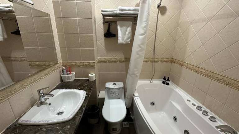 Die Zimmer im Altyn Adam Hotel sind mit einem Schreibtisch, einem TV und Klimaanlage ausgestattet. Jedes Zimmer verfügt über ein eigenes Badezimmer mit Badewanne und kostenlosen Pflegeprodukten. Bettwäsche und Handtücher sind ebenfalls vorhanden und werden gemäß den Richtlinien der örtlichen Behörden gewaschen. Einige Zimmer sind mit einem Sitzbereich ausgestattet.