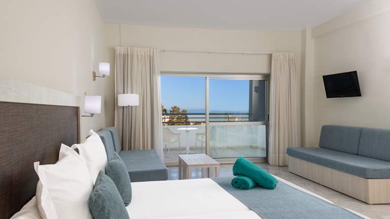 Unsere 373 Zimmer sind für Familien mit Kindern konzipiert. Sie sind alle geräumig und komfortabel und verfügen über alle Services sowie Annehmlichkeiten, die man von einem All-inclusive-Hotel an der Costa del Sol erwartet. Genießen Sie den Blick auf die Berge, während Sie auf der Terrasse frühstücken oder zu Abend essen.