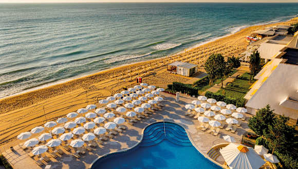 Das Hotel in Obzor ist ein ideales Reiseziel für Familien, die in direkter Strandlage entspannen möchten. Von der Terrasse des Pools können Sie zauberhafte Sonnenuntergänge genießen und das All-Inclusive-Angebot des Hotels bietet eine große Auswahl an kulinarischen Köstlichkeiten.