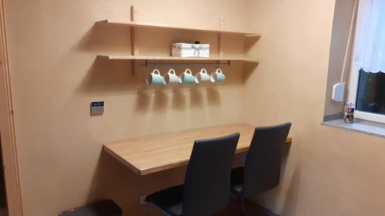 Die Ferienwohnung verfügt über ein Schlafzimmer, ein Wohnzimmer sowie eine vollständig ausgestattete Küche mit Kühlschrank und Kaffeemaschine. Ein Badezimmer mit Dusche und kostenlosen Pflegeprodukten ist ebenfalls vorhanden. Handtücher und Bettwäsche werden bereitgestellt.