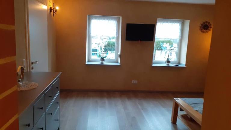 Die Unterkunft Am Eulenwald bietet Übernachtungsmöglichkeiten mit kostenlosem WLAN und einem Fernseher. Die Einrichtung umfasst ein Schlafzimmer, ein Wohnzimmer und eine voll ausgestattete Küche.