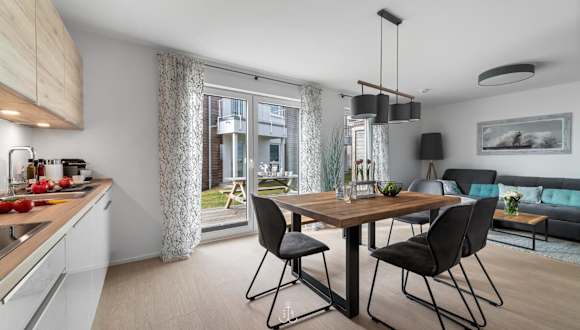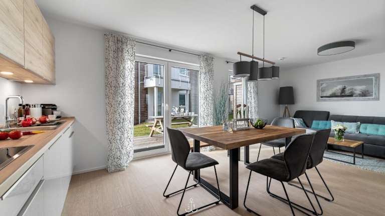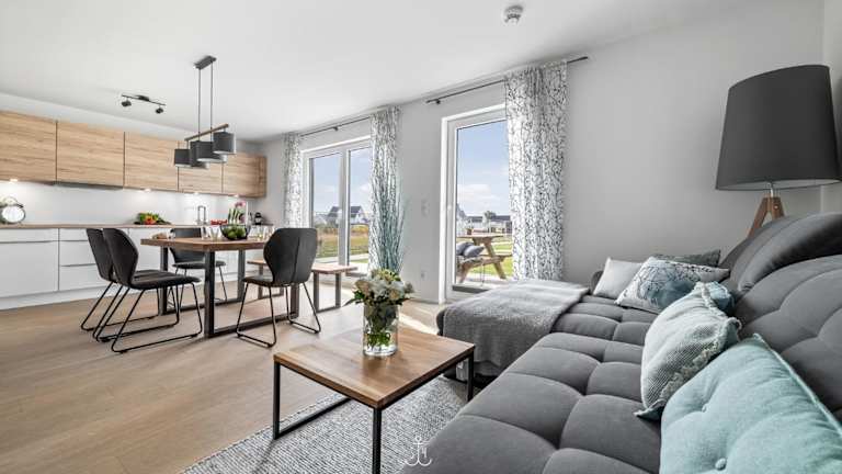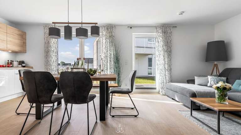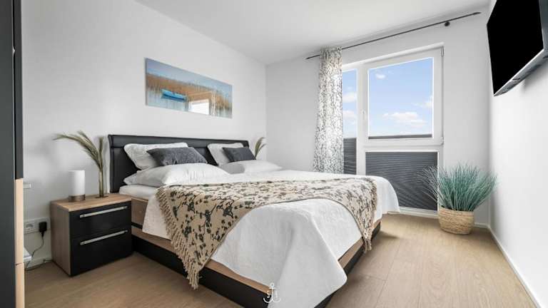 Die Ferienwohnung verfügt über zwei Schlafzimmer, eine gut ausgestattete Küche mit Kühlschrank und Geschirrspüler, ein Wohnzimmer sowie einen Fernseher. Die Zimmer sind über Nichtraucherzimmer organisiert und stellen eine komfortable Unterkunft dar.