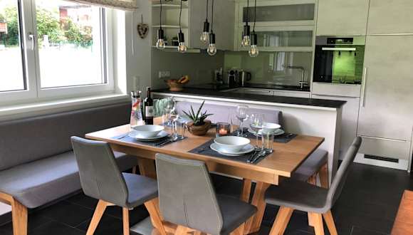 Die Ferienwohnung umfasst 2 Schlafzimmer, ein Wohnzimmer, einen Flachbild-TV und eine gut ausgestattete Küche mit Kühlschrank und Geschirrspüler. Ein Badezimmer mit Dusche sowie eine Terrasse mit Bergblick sind ebenfalls vorhanden. Handtücher und Bettwäsche werden bereitgestellt.