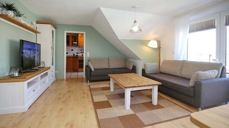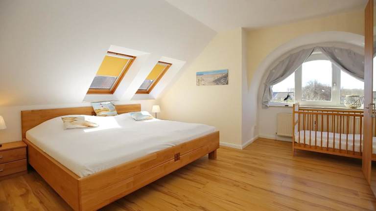 Die Ferienwohnung umfasst ein Schlafzimmer, ein Wohnzimmer und eine gut ausgestattete Küche, die mit einem Kühlschrank und einem Geschirrspüler ausgestattet ist. Zur Unterhaltung stehen ein TV mit Kabelkanälen, ein DVD-Player sowie ein CD-Player bereit.