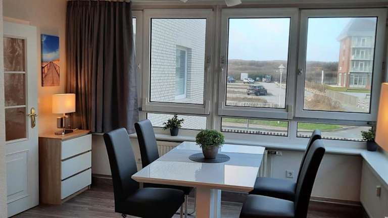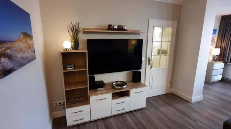 Die Ferienwohnung verfügt über ein Schlafzimmer sowie über einen TV. Die voll ausgestattete Küche ist mit einem Kühlschrank, Geschirrspüler, Waschmaschine, Ofen und Herdplatte eingerichtet. Zudem werden Handtücher und Bettwäsche bereitgestellt.
