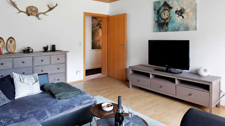 Die Ferienwohnung umfasst 1 Schlafzimmer und ein Wohnzimmer. Sie bietet einen TV und eine gut ausgestattete Küche mit Kühlschrank und Geschirrspüler. Das Badezimmer ist mit einer Dusche ausgestattet. Handtücher und Bettwäsche sind in der Unterkunft vorhanden.