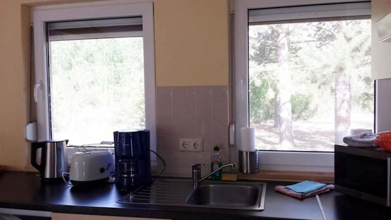 Die Unterkunft 'Ferien Nord-Nordost' Wooster Teerofen 'Am Walde' ist ein komfortables Ferienhaus mit einer Sauna. Es wird ein kostenloser Privatparkplatz angeboten und die Unterkunft stellt eine Terrasse zur Verfügung. Ein besonderer Vorteil ist der Kinderspielplatz, der für Familien geeignet ist.