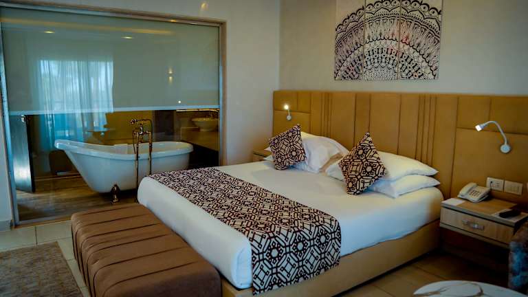 Die Zimmer und Suiten im Amarina Abu Soma Resort & Aquapark wurden sorgfältig gestaltet, um die natürliche Schönheit der erstklassigen Lage an der Küste von Abu Soma hervorzuheben und zu erhalten. Es präsentiert eine Ästhetik des Roten Meeres an der Küste mit Designelementen, die auf die natürliche Umgebung der Region eingehen. Jedes der 393 geräumigen Gästezimmer strahlt eine warme und luxuriöse Atmosphäre aus und bietet komfortable, moderne Möbel und private Balkone oder Terrassen mit Blick auf elegante Gärten, Pools und atemberaubende Ausblicke auf das Rote Meer. Die Zimmer sind ausgestattet mit: Satelliten-Flachbildfernseher Minibar (gegen Gebühr) Safe Kaffee- und Teetablett (täglich aufgefüllt, inklusive) Föhn Großer Spiegel Rasier- / Kosmetikspiegel Terrasse oder Balkon Duschkabine Individuell regulierbare Klimaanlage Telefon im Zimmer Wäsche- und Bügelservice (gegen Gebühr) Täglicher Reinigungsservice WLAN im Zimmer (begrenzte Geschwindigkeit) Zimmerservice (24 Stunden) gegen Gebühr Luxus-Bettwäsche (reine ägyptische Baumwolle) Premium-Elemente wie Porzellanfußböden, Umweltfreundliche Farben und Seitenlampen Große Flasche Mineralwasser (täglich aufgefüllt, inklusive) Unsere Gästezimmer kombinieren einen modernen Stil der Unterkunft mit Annehmlichkeiten, die den Luxus des Amarina Abu Soma Resort & Aquapark erfassen. Zimmerart Gröβe (m²) Bettstil / Größe Standard Doppelzimmer 30 bis 35 Doppelbett (180 cm) Standard Zweibettzimmer 30 bis 35 Einzelbetten (120 cm) Superior-Zimmer 35 bis 40 Doppelbett (180 cm) & Sof Standard Familienzimmer 32 bis 36 Doppelbett (180 cm) + Einzelbetten (90 cm) im Kinderbereich Superior Familienzimmer 36 bis 42 Doppelbett (180 cm) & Sofa + Einzelbetten (90 cm) im Kinderbereich Deluxe-Zimmer 36 bis 42 Doppelbett (180 cm) & Sof Suiten 65 bis 90 Ein Schlafzimmer + Wohnzimmer oder 2 Schlafzimmer + Wohnzimmer