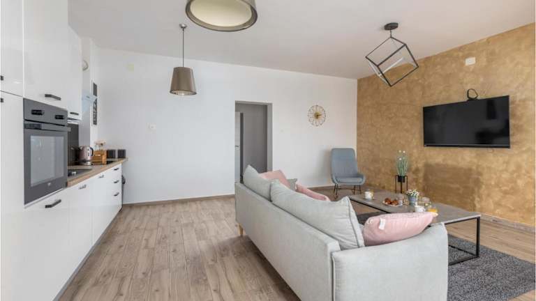 Die Unterkunft bietet zwei Schlafzimmer, ein Wohnzimmer und ein Badezimmer mit Badewanne. Das Apartment ist mit einer Klimaanlage ausgestattet und bietet kostenloses WLAN. Außerdem steht ein kostenloser Privatparkplatz zur Verfügung.