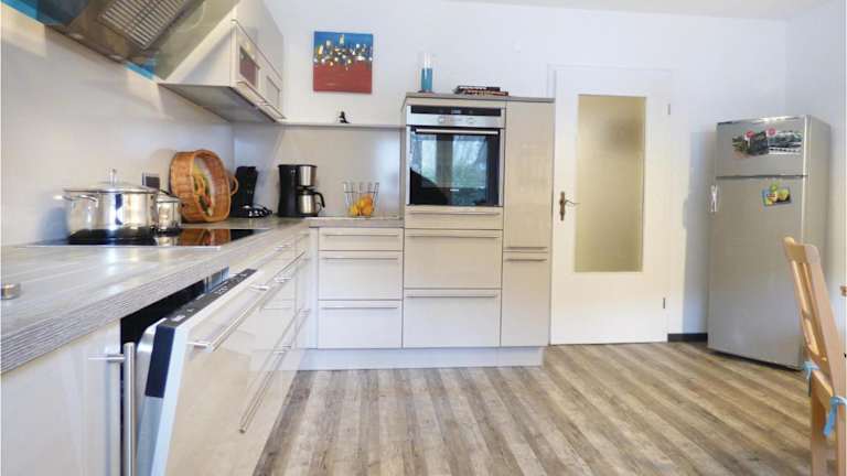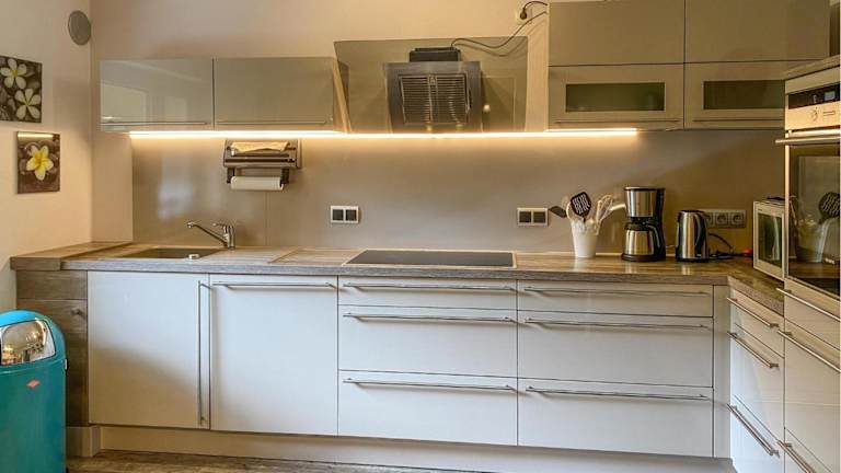 Eine voll ausgestattete Küche mit Kühlschrank und Kaffeemaschine steht zur Verfügung, sodass Selbstverpflegung möglich ist. Es sind keine spezifischen gastronomischen Angebote aufgeführt.