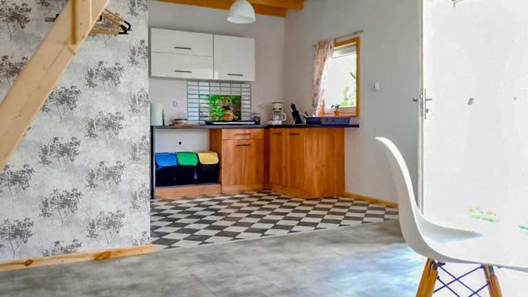 Das Ferienhaus beinhaltet zwei Schlafzimmer, ein Wohnzimmer und eine voll ausgestattete Küche, die einen Kühlschrank und eine Kaffeemaschine umfasst. Das Badezimmer ist mit einer Dusche und einem Haartrockner ausgestattet.