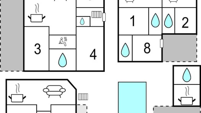Das Ferienhaus umfasst insgesamt 8 Schlafzimmer und ein Wohnzimmer. Zur Ausstattung gehört eine voll ausgestattete Küche mit einem Kühlschrank und einer Kaffeemaschine. Es gibt 6 Badezimmer, die jeweils mit einer Dusche und einem Whirlpool ausgestattet sind. Die Unterkunft bietet zudem Klimaanlage, WLAN und einen Balkon.