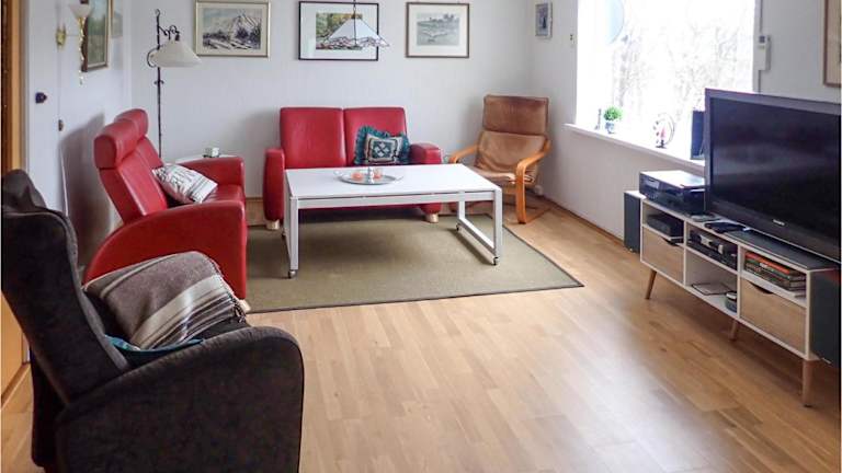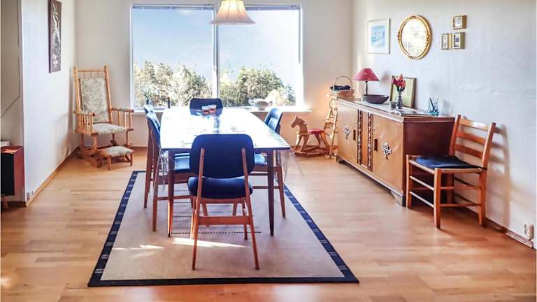 Das Ferienhaus verfügt über vier Schlafzimmer und ein Badezimmer mit Dusche. Zur Ausstattung gehören auch ein Essbereich und ein Wohnzimmer.