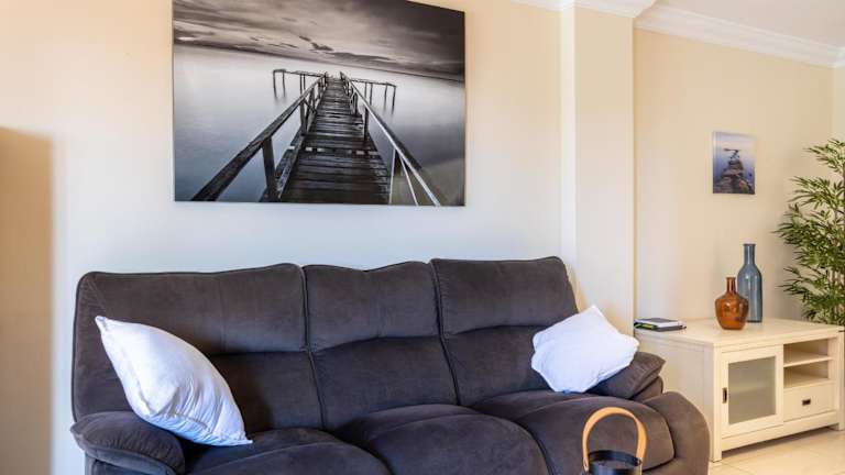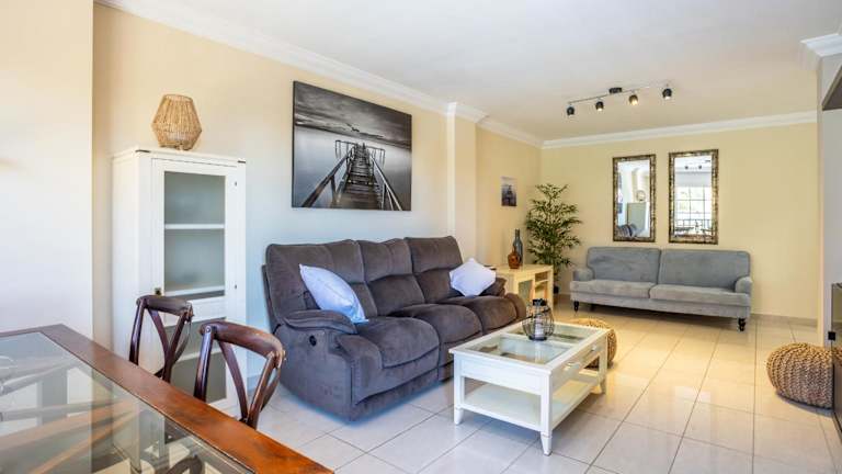 Die Wohnung hat drei Schlafzimmer und zwei Badezimmer. Sie ist mit Klimaanlage ausgestattet und verfügt über eine voll ausgestattete Küche mit Kühlschrank und Geschirrspüler. Handtücher und Bettwäsche werden zur Verfügung gestellt.