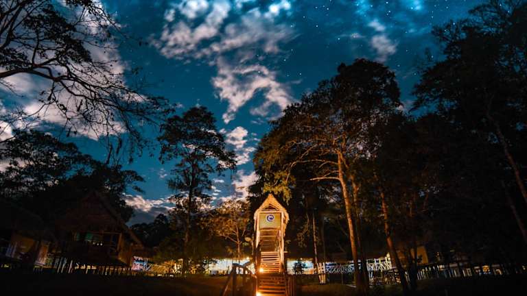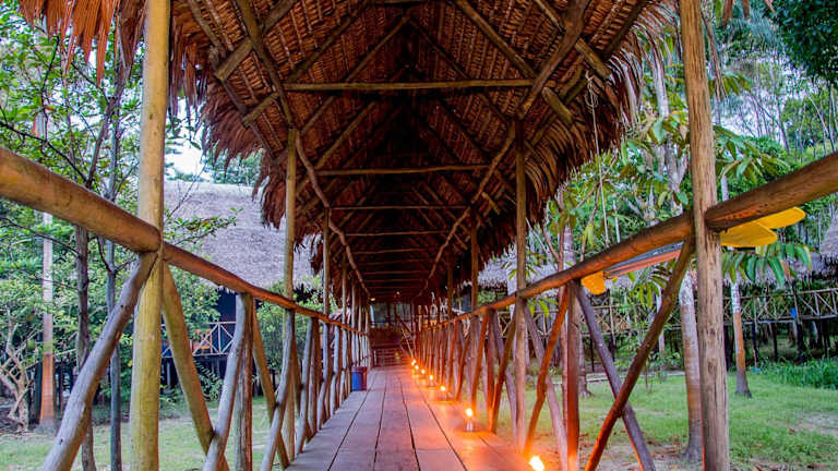 Die Amazon Muyuna Lodge liegt abgelegen im Dschungel von Iquitos, am Ufer des mächtigen Amazonas. Sie befindet sich etwa 3 Stunden vom Stadtzentrum von Iquitos entfernt und kann nur mit dem Boot erreicht werden. Diese einzigartige Lage bietet Ihnen die Möglichkeit, die unberührte Natur des Amazonas-Regenwaldes zu erkunden und die atemberaubende Schönheit der Umgebung zu erleben.
