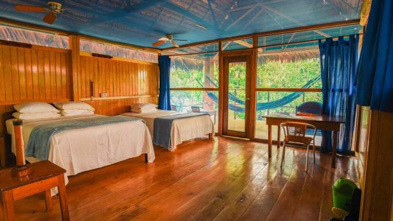 Die Bungalows der Amazon Muyuna Lodge sind einfach, aber gemütlich eingerichtet und verfügen über alle notwendigen Annehmlichkeiten. Jedes Zimmer bietet ein eigenes Bad und eine Terrasse mit Blick auf den Fluss. Moskitonetze und Petroleumlampen sorgen für einen angenehmen Aufenthalt im Einklang mit der Natur.