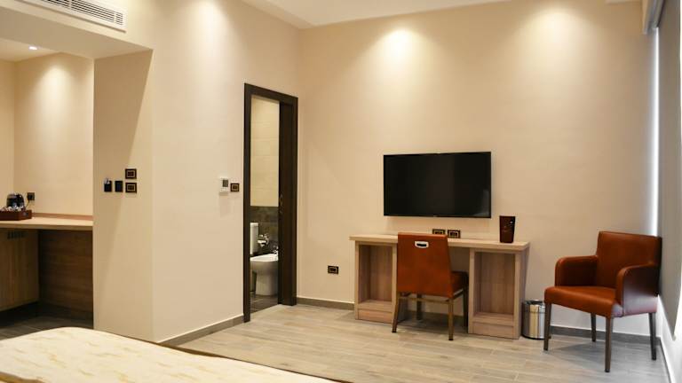 Die Zimmer sind klimatisiert und mit einem Schreibtisch, Wasserkocher, Minibar, Safe und Flachbild-TV ausgestattet. Ein eigenes Badezimmer mit Bidet ist vorhanden. Bettwäsche und Handtücher werden bereitgestellt. Die Unterkunft bietet Familien- und Nichtraucherzimmer.
