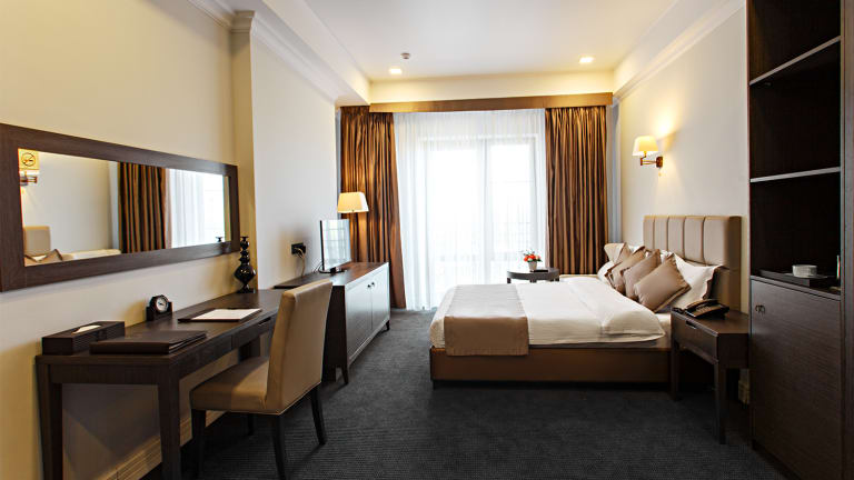 Das Ambassador Hotel in Bischkek bietet eine günstige Lage und komfortable Zimmer für einen angenehmen Aufenthalt in der Stadt. Das Hotel verfügt über ein Restaurant und kostenloses WLAN. Die Zimmer sind klimatisiert und mit TV und Minibar ausgestattet. Das Hotel bietet zudem eine 24-Stunden-Rezeption und kostenfreie Parkplätze.