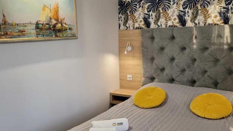 Die Unterkunft befindet sich in der ul. Sloneczna 8, nur 200 Meter vom Strand Mielno entfernt. Die nächstgelegenen Städte sind Rathaus und Kolberg, die jeweils 44 km und 45 km entfernt liegen. Der Flughafen Stettin-Goleniów ist 140 km von der Unterkunft entfernt.