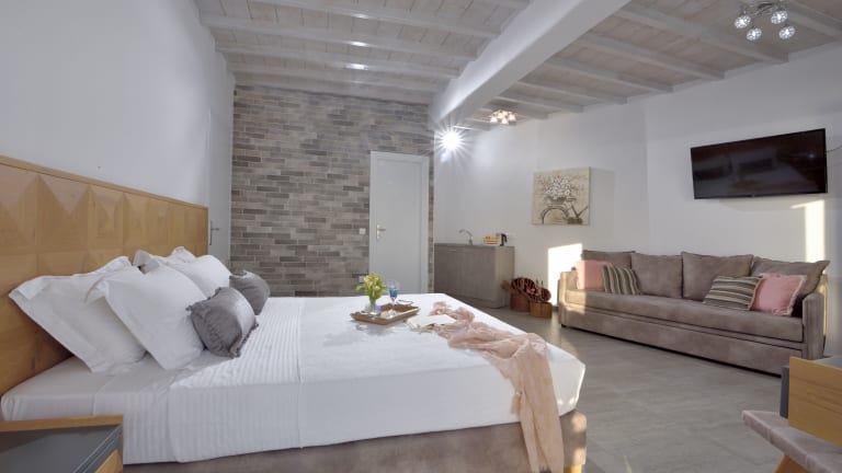 Die Amelie Suites bieten stilvolle Unterkünfte im Kykladen-Stil. Jede Suite ist klimatisiert und verfügt über eine moderne Einrichtung sowie einen Flachbild-TV. Die Terrasse bietet Ihnen die Möglichkeit, die frische Meeresluft zu genießen und den Blick auf die Ägäis zu bewundern. Das eigene Bad ist mit einer Whirlpool-Badewanne und kostenfreien Pflegeprodukten ausgestattet. Die Suiten bieten Ihnen den Komfort und die Annehmlichkeiten, die Sie für einen angenehmen Aufenthalt benötigen.
