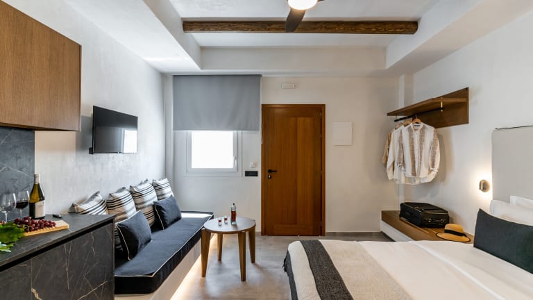 Entdecken Sie das Amer Suites Fira in Santorin, ein Hotel mit einzigartig gestalteten Zimmern und einer günstigen Lage nahe verschiedenen Sehenswürdigkeiten. Genießen Sie den Komfort der modernen Ausstattung und profitieren Sie von kostenfreiem WLAN und einem Concierge-Service. Das Hotel stellt die Sicherheit und Hygiene der Gäste in den Vordergrund und bietet eine freundliche Rezeption sowie kontaktlosen Check-out.