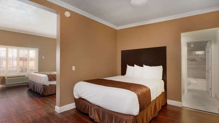Die Zimmer im America's Best Value Inn & Suites Anaheim sind komfortabel und stilvoll eingerichtet. Sie verfügen über einen Flachbild-TV mit Premium-Kabelkanälen, eine Mikrowelle und einen Minikühlschrank. So haben Sie alles, was Sie für einen angenehmen Aufenthalt benötigen.