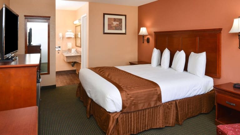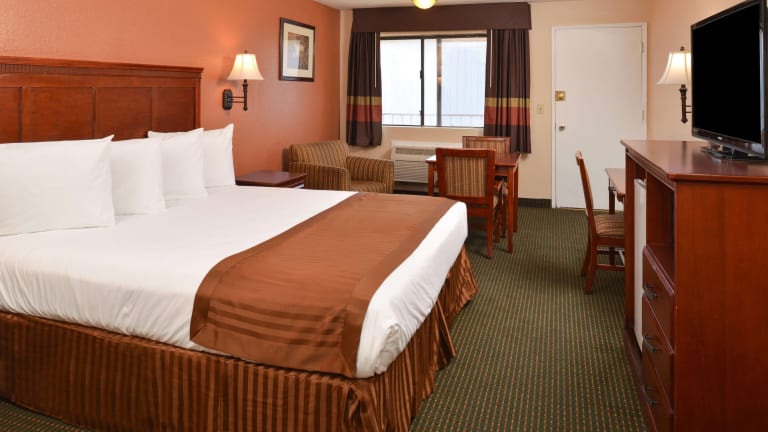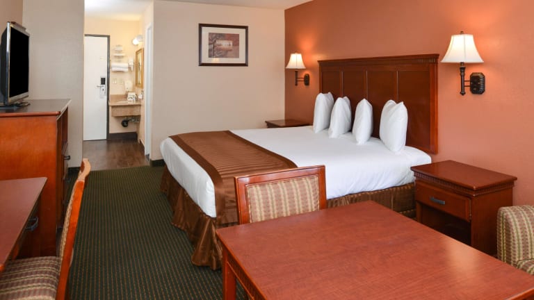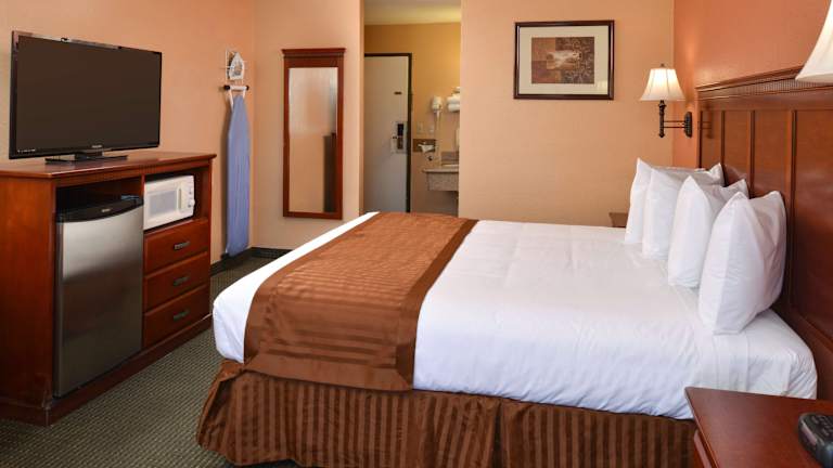 Die Zimmer im Americas Best Value Inn & Suites-East Bakersfield sind traditionell eingerichtet und verfügen über Kabel-TV mit HBO. Zur Ausstattung gehören auch ein Schreibtisch, eine Mikrowelle und ein Kühlschrank. Einige Zimmer haben auch einen Balkon, auf dem Sie entspannen können. Es gibt auch rollstuhlgerechte Zimmer und Familienzimmer für Gäste, die mit Kindern reisen.