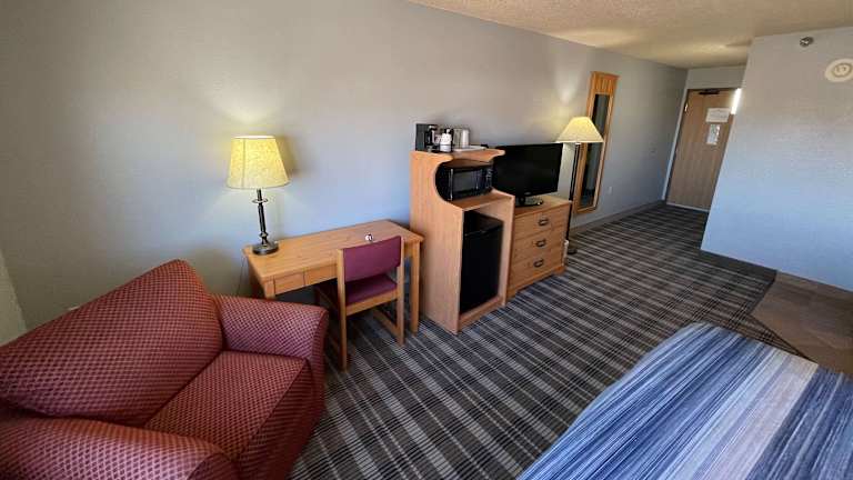 Das AmericInn by Wyndham Sayre bietet eine komfortable Unterkunft mit 45 Zimmern auf zwei Etagen. Zur Ausstattung gehören ein Aufzug, eine Rezeption, die rund um die Uhr besetzt ist, ein Getränkeautomat sowie verschiedene behindertengerechte Einrichtungen. Gäste haben zudem Zugang zu einem Indoor- und einem Outdoor-Pool sowie einem Whirlpool im Wellnessbereich.