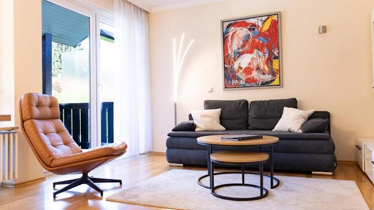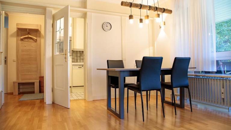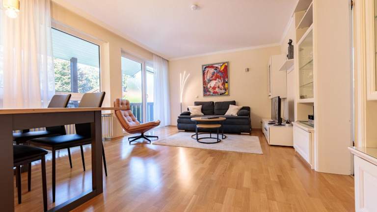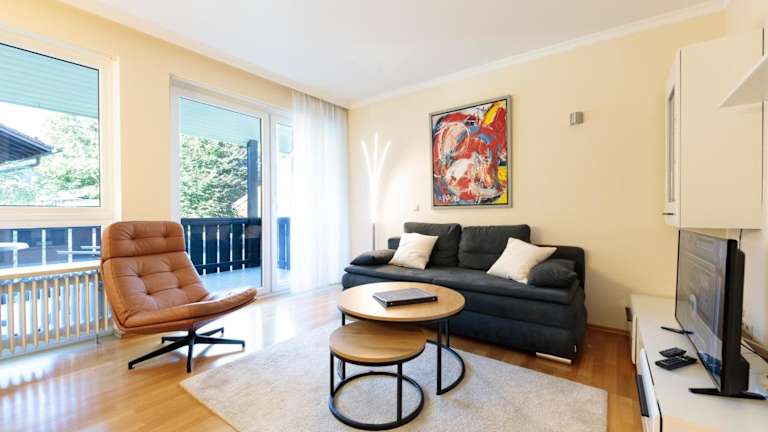 Die Ferienwohnung verfügt über ein Schlafzimmer und ein Wohnzimmer. Zur Ausstattung gehören ein TV, eine gut ausgestattete Küche mit Kühlschrank und Geschirrspüler sowie ein Badezimmer mit Dusche. Handtücher und Bettwäsche werden zur Verfügung gestellt. Ein Balkon mit Bergblick ist ebenfalls vorhanden.