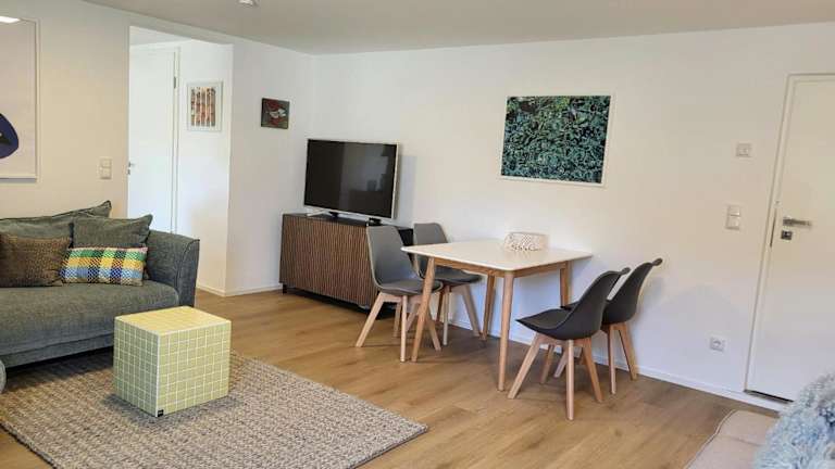Die Ferienwohnung verfügt über 1 Schlafzimmer, ein Wohnzimmer, einen Flachbild-TV und eine gut ausgestattete Küche mit Kühlschrank und Geschirrspüler. Zudem steht 1 Badezimmer mit Dusche zur Verfügung. Handtücher und Bettwäsche werden bereitgestellt.