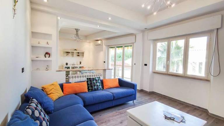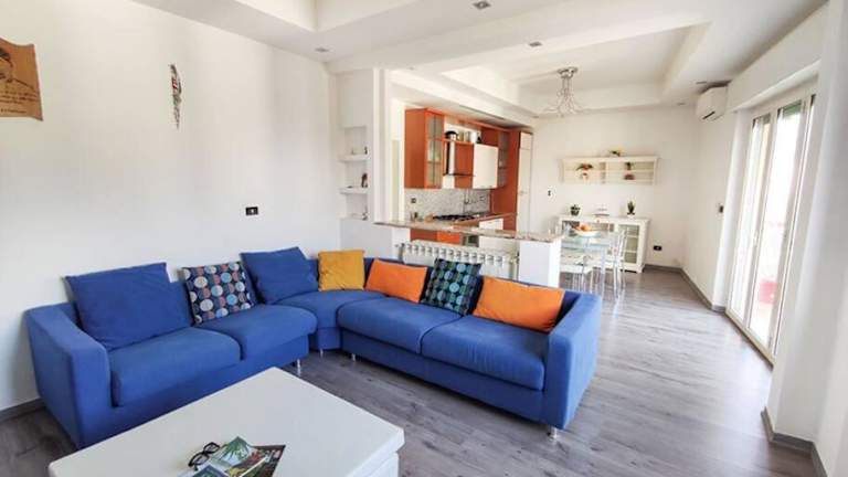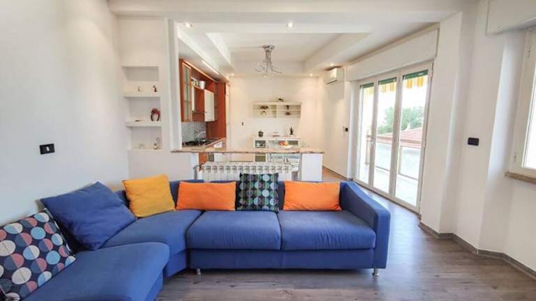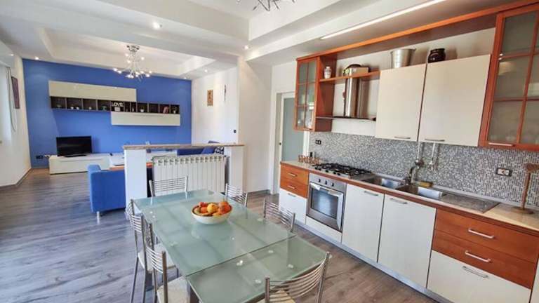 Ampio Quadrilocale 8 Pax vista mare ist eine Ferienwohnung mit Klimaanlage, die für bis zu 8 Personen geeignet ist. Die Unterkunft bietet eine voll ausgestattete Küche sowie zwei Badezimmer. Handtücher und Bettwäsche sind optional erhältlich.