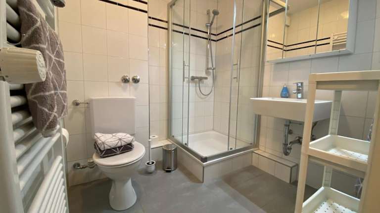 Das Apartment im Amrumer Schatztruhe mit Loggia und Meerblick verfügt über ein gemütliches Schlafzimmer, eine gut ausgestattete Küche mit Kühlschrank und Geschirrspüler sowie ein komfortables Badezimmer mit Badewanne. Der Wohnbereich ist mit einem Flachbild-TV und einem bequemen Sitzbereich ausgestattet. Handtücher und Bettwäsche werden gestellt, sodass Sie sich um nichts kümmern müssen.