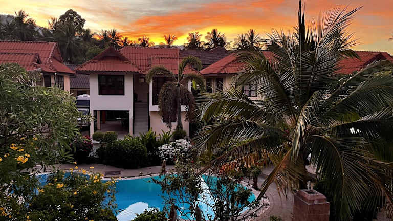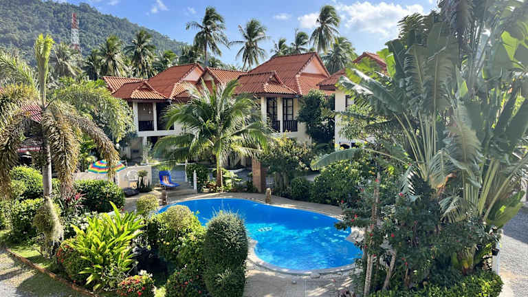 Das Amy Village Garden Resort ist ein ruhiges und grünes Hotel, das seinen Gästen eine entspannte Atmosphäre bietet. Mit kostenfreiem WLAN und einem Außenpool inmitten tropischer Gärten können Sie hier einen erholsamen Aufenthalt genießen. Die Zimmer sind komfortabel eingerichtet und verfügen über Annehmlichkeiten wie einen eigenen Balkon, Kabel-TV, einen DVD-Player, Tee- und Kaffeezubereitungsmöglichkeiten, einen Kühlschrank, einen Safe und einen Ventilator. Die Lage des Resorts ist ideal, da es nur wenige Schritte von einem Tesco Lotus-Geschäft und nur 10 Gehminuten vom Lamai Beach entfernt liegt. Außerdem erreichen Sie von hier aus bequem verschiedene Restaurants, die thailändische, europäische und vegetarische Küche anbieten.