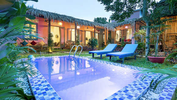 Neben dem Strand bietet das An Bang Beach Happy Village einen Außenpool, in dem Sie sich erfrischen und entspannen können. Genießen Sie die Sonne auf der Terrasse und nutzen Sie die kostenfreien Privatparkplätze, um die Umgebung zu erkunden.