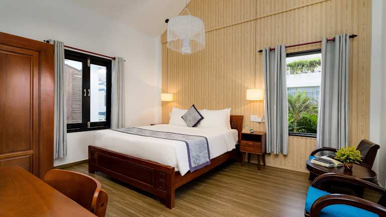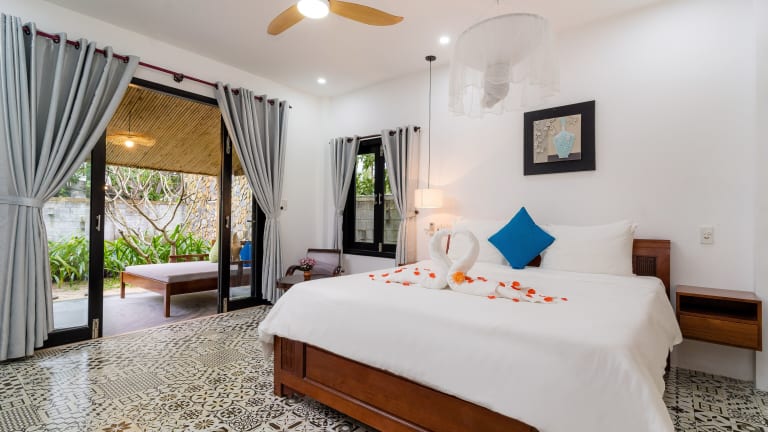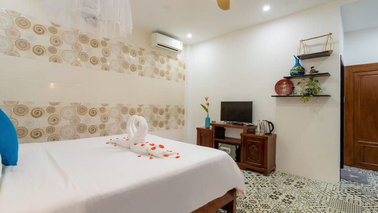 Das An Bang Garden Homestay in Hoi An ist ein gemütliches Hotel, nur wenige Gehminuten vom wunderschönen An Bang Strand entfernt. Hier erwartet Sie eine entspannte Atmosphäre und kostenfreies WLAN. Die Zimmer bieten Blick auf den grünen Garten und sind klimatisiert. Jedes Zimmer verfügt über einen Flachbild-Kabel-TV, eine Minibar und eine Kaffeemaschine. Das freundliche Personal an der 24-Stunden-Rezeption steht Ihnen gerne zur Verfügung und hilft Ihnen bei der Organisation von Ausflügen und der Buchung von Tickets. Sie können auch kostenlose Fahrräder ausleihen, um die Umgebung zu erkunden. In der Nähe des Hotels gibt es viele Restaurants, in denen Sie lokale Spezialitäten probieren können.